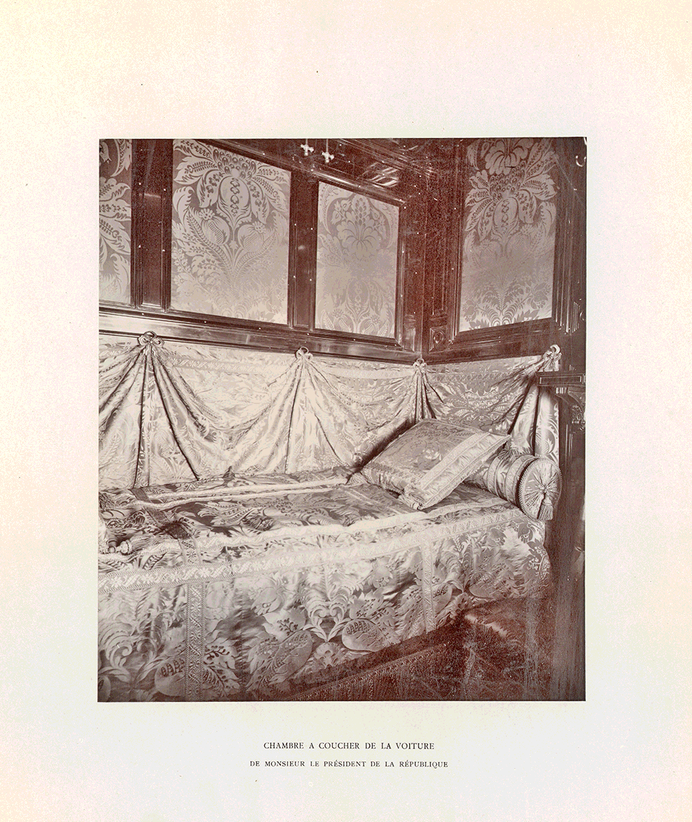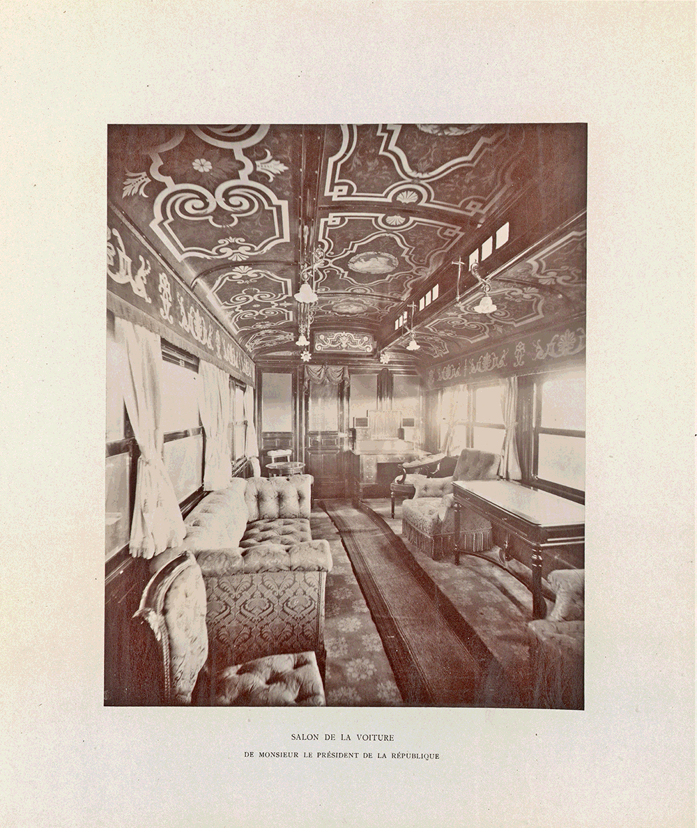 Поскольку российская колея была шире европейской, для заграничных поездок существовали особые поезда. Иногда при таких визитах поезд предоставляла принимающая сторона: пример тому — специально переоборудованный ради визита Николая II и Александры Фёдоровны во Францию в 1896 году президентский поезд. Сохранился фотоальбом со снимками этого поезда, подаренный высоким гостям.