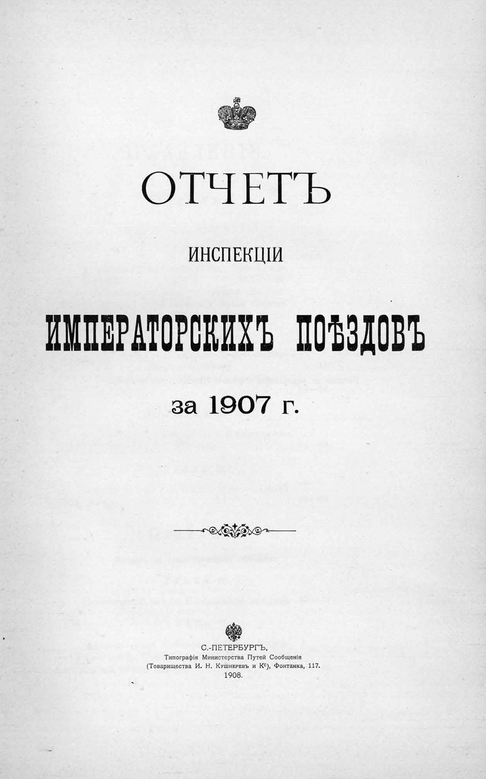 Отчёт Инспекции императорских поездов… … за 1907 г.
