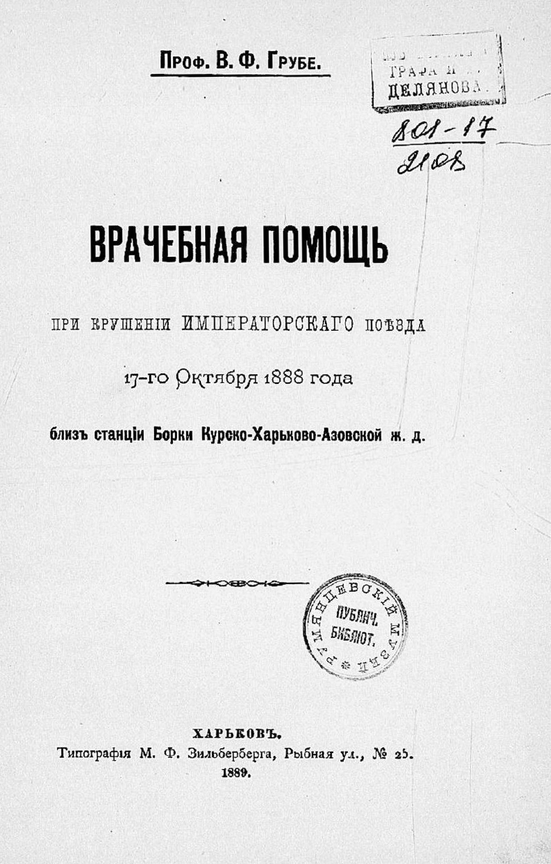 Материалы, извлечённые из… следственного производства по делу о крушении поезда 17 окт. 1888 г. между станциями Борки и Тарановка на линии Курско-Харьково-Азовской ж. д.