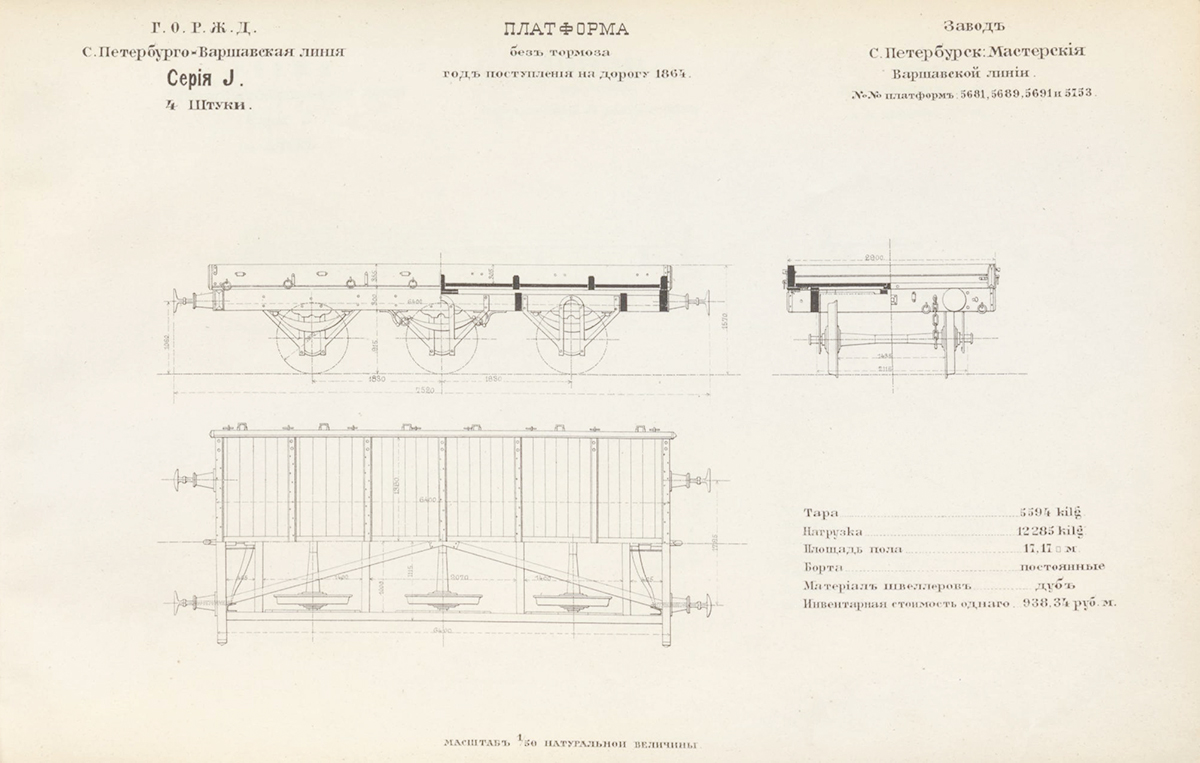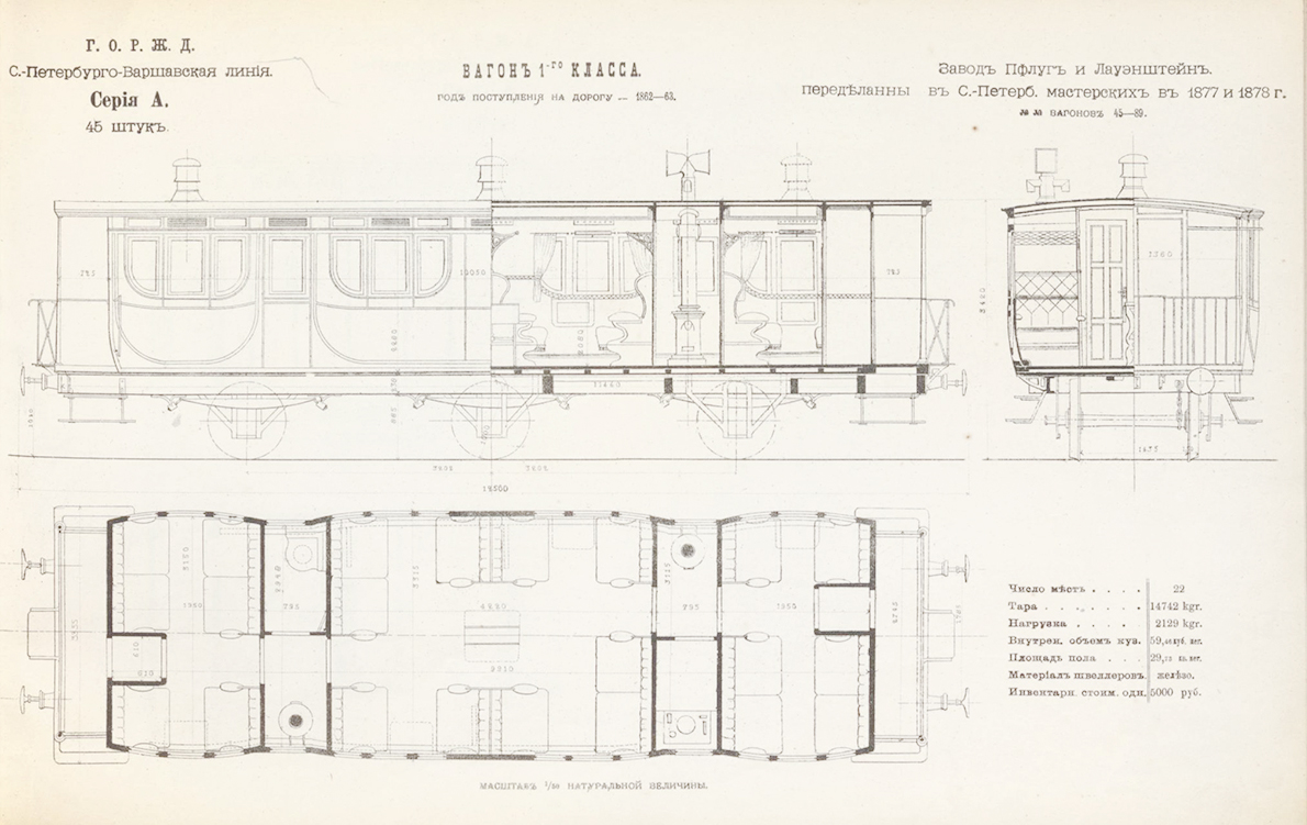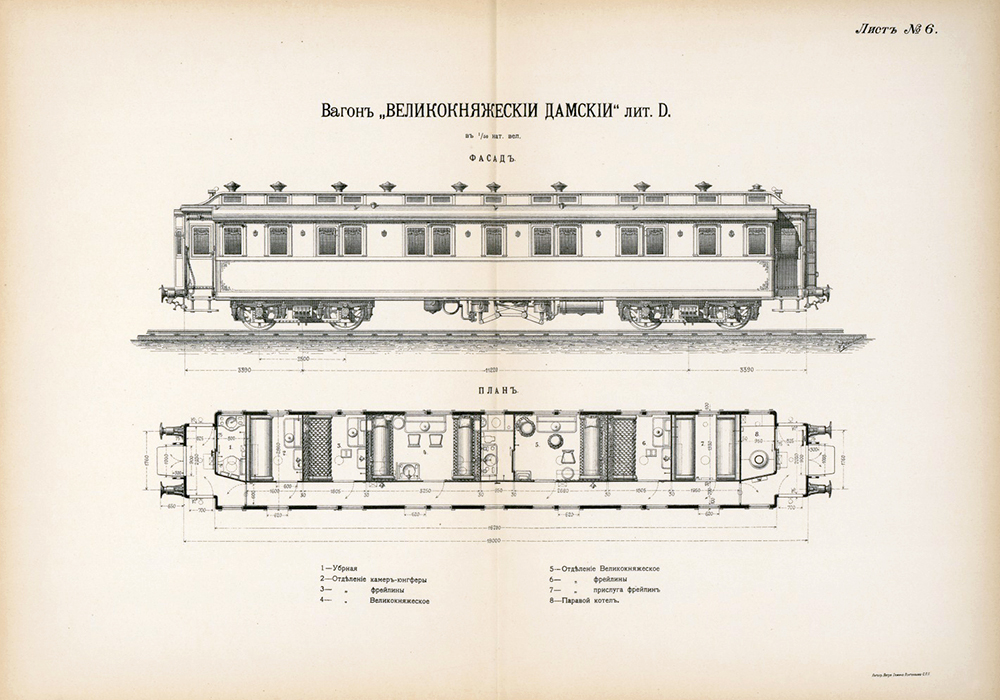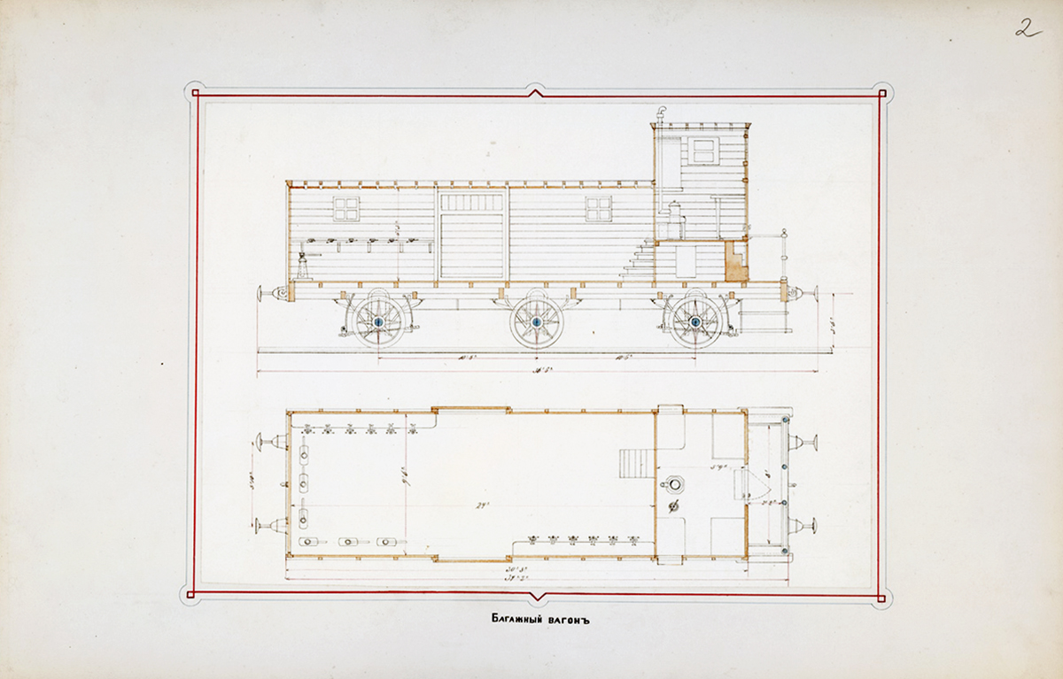 Вагоны царского поезда Курско-Харьковско-Азовской железной дороги: альбом (чертежи), 1871